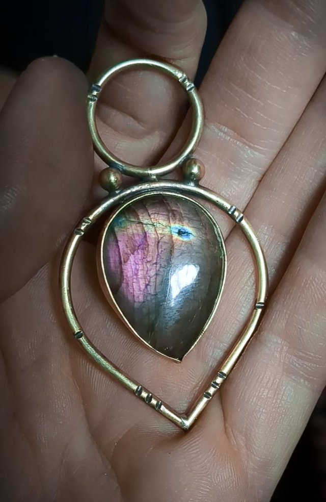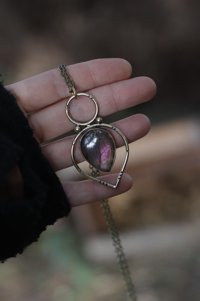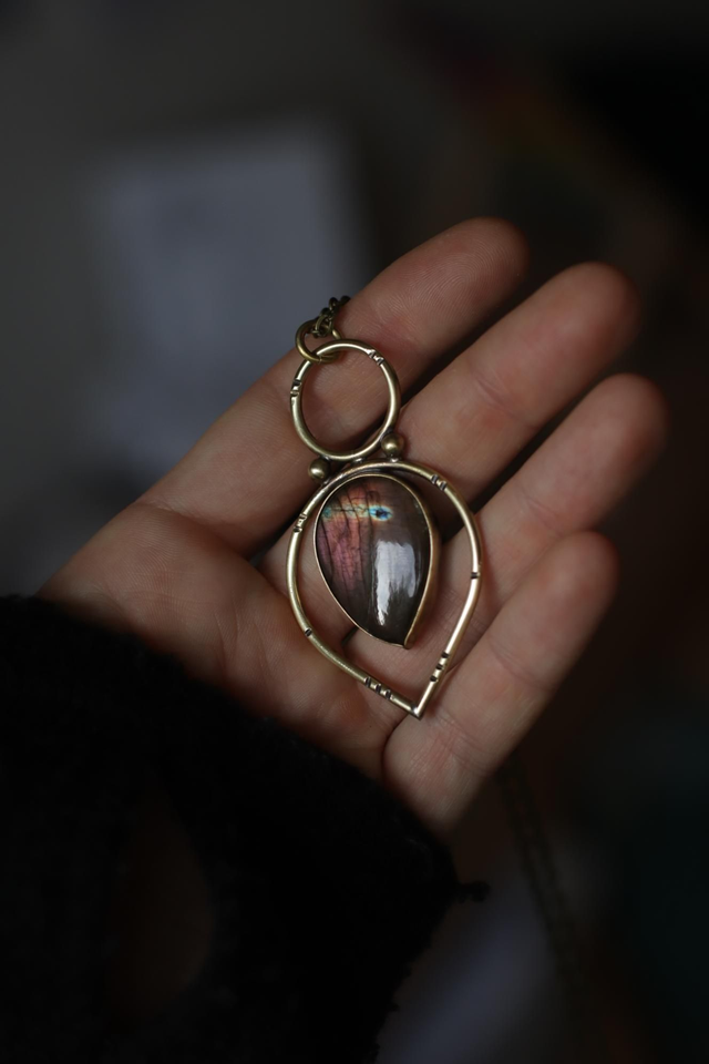 ◈ pièce unique en laiton ◈ labradorite ◈ chaîne incluse
