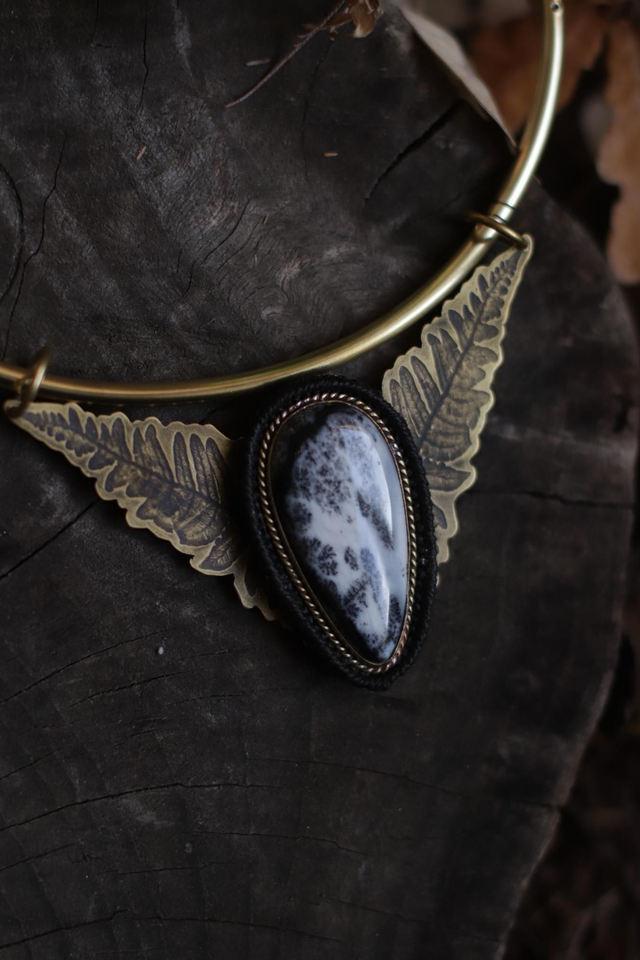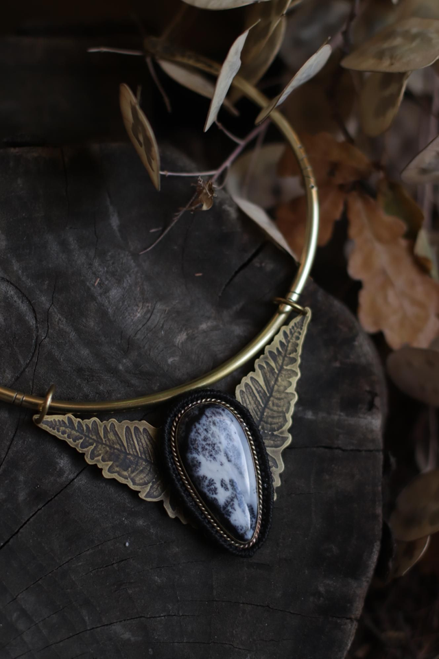 ◈ pièce unique ◈ agate dentritique & laiton ◈ monté sur un Torque Némésis 4mm ◈ taille : ~ 9x6cm